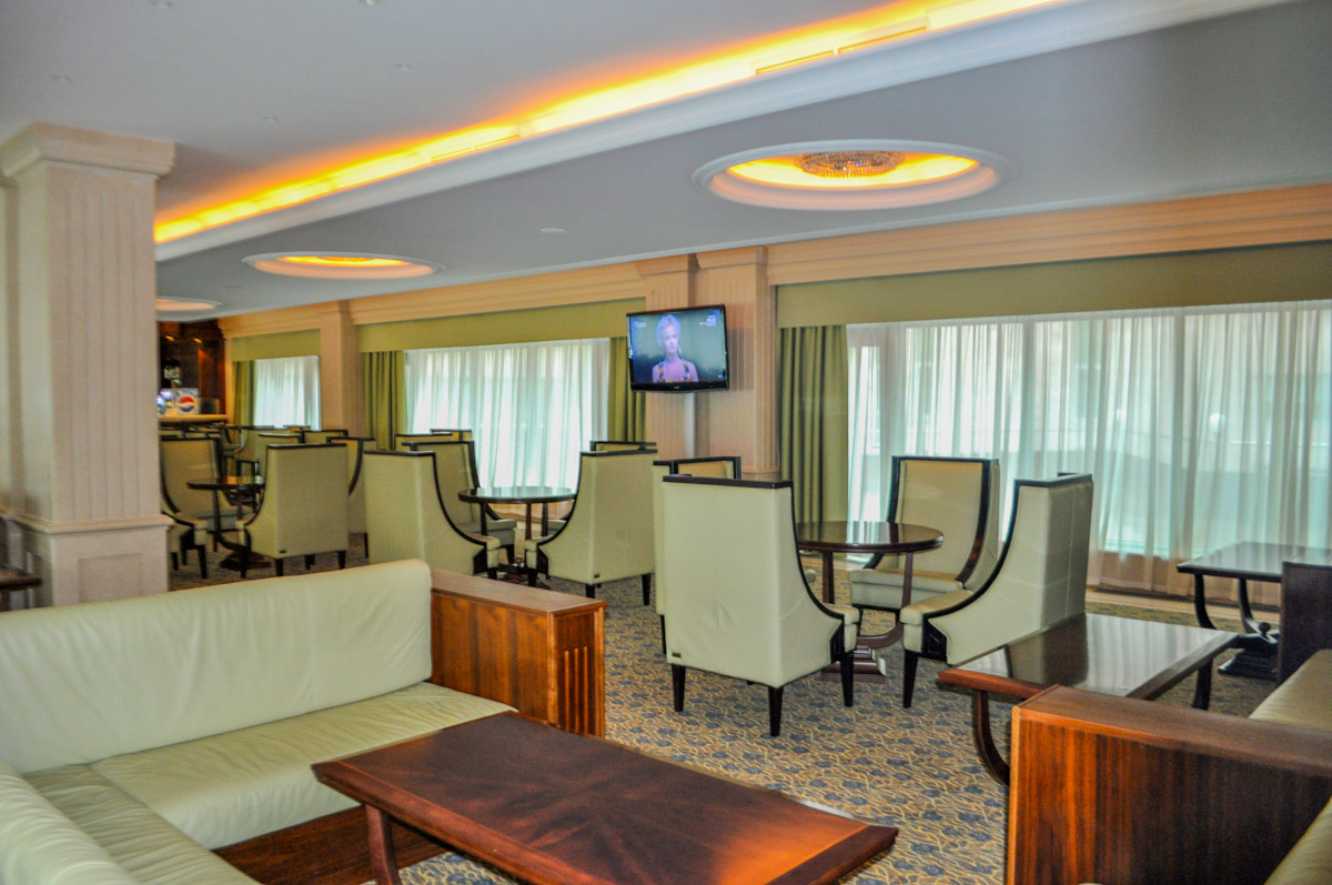 В лобби-баре имеются удобные барные стулья и стойки, а основное пространство занимают сервированные столы и мягкие кресла. В помещении царит чистота и элегантность. В заведении достаточно места, чтобы рассадить всех желающих — и взрослых, и детей. Проходы просторные и позволяют свободно перемещаться по заведению. Персонал помогает с выбором заказа и быстро обслуживает клиентов.