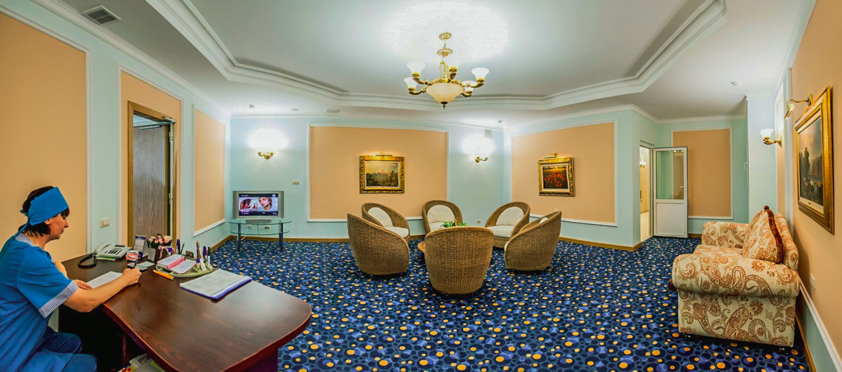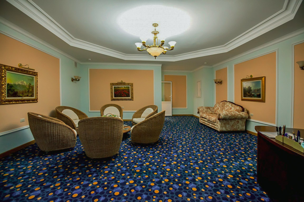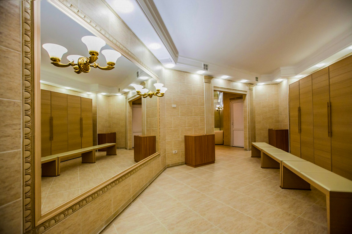 В парной комнате очень комфортно. В ней можно удобно расположиться на пологах из экологичного дерева. В сауне также есть уютный зал ожидания и гостиная, где можно попить травяной чай и расслабиться после процедур. Везде стоят большие мягкие диваны и столики. Предусмотрены и раздевалки со множеством просторных шкафчиков и скамеек. В центре сауны расположен ресепшен, где администратор ответит на все интересующие вопросы гостей. Сауна в санатории «Заря» в Кисловодске — это гармоничный отдых в спокойной обстановке.