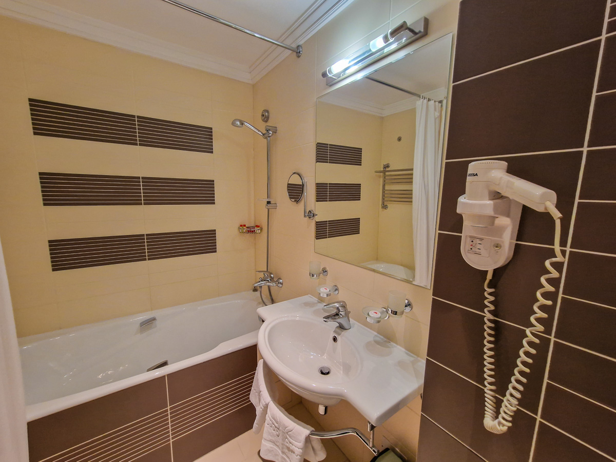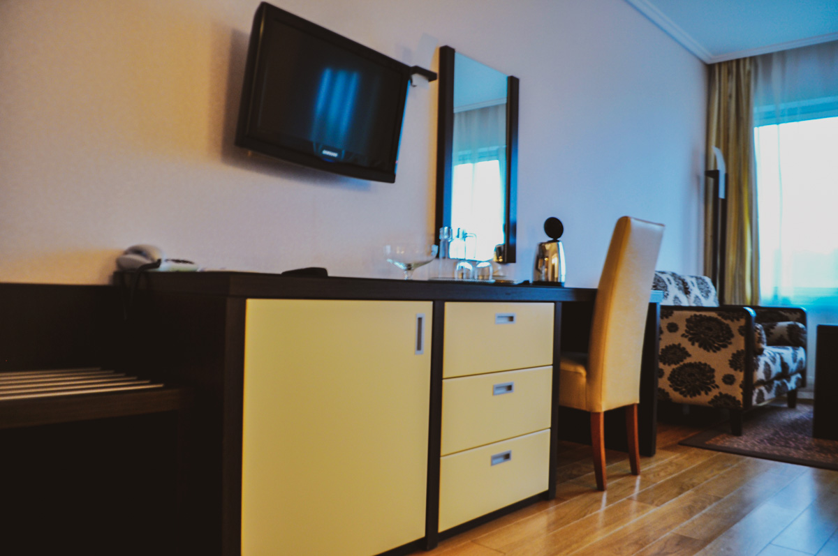 В номере есть и рабочие зоны, а также места для чаепитий и перекусов. Также имеется санузел, дополненный персональными гигиеническими атрибутами.